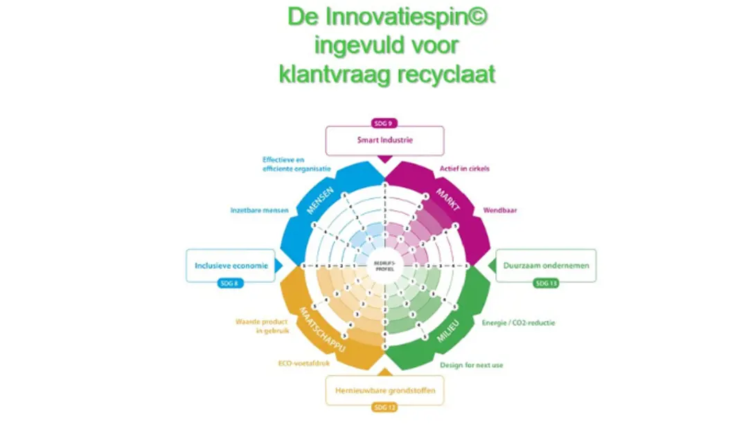 Het is belangrijk dat (mkb)bedrijven ondersteund worden bij het vertalen van hun duurzame en circulaire ambities naar concrete acties. Dit is een uitdaging waar veel bedrijven tegenaan lopen. Om deze kloof te overbruggen, zijn SDG-doelen, Europese Green Deal en Nederlandse klimaat- en circulariteitsdoelen vertaald in een praktische ondernemingstool: de Innovatiespin.